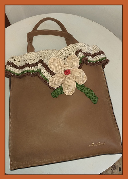 Riproducibili in colori e motivi a crochet diversi, con fiore stessa forma e misura e con manico a tracolla