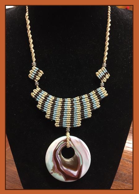 Collana in cordino cerato a macramè e pietra dura.